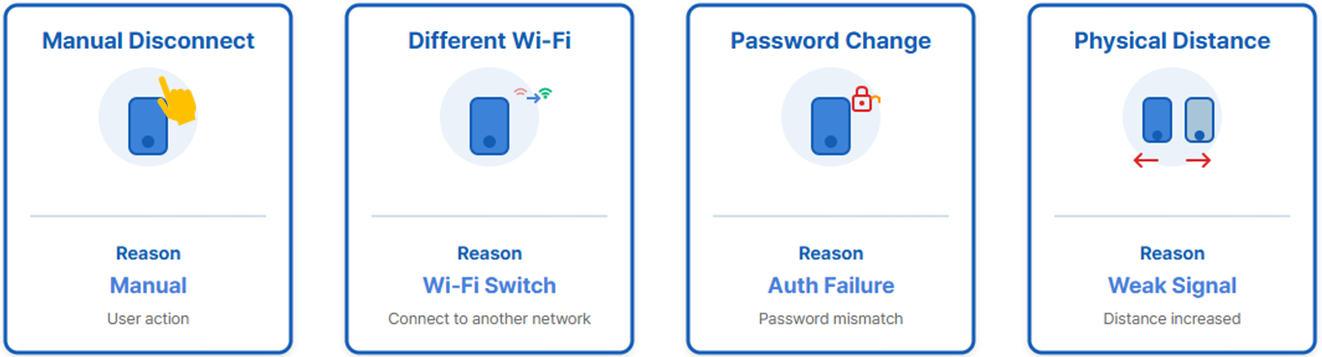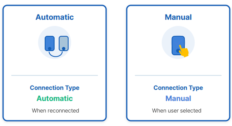 • Manual connection: The user actively selects and reconnects to the hotspot. Since the password was saved during the first connection, re-authentication is not required.